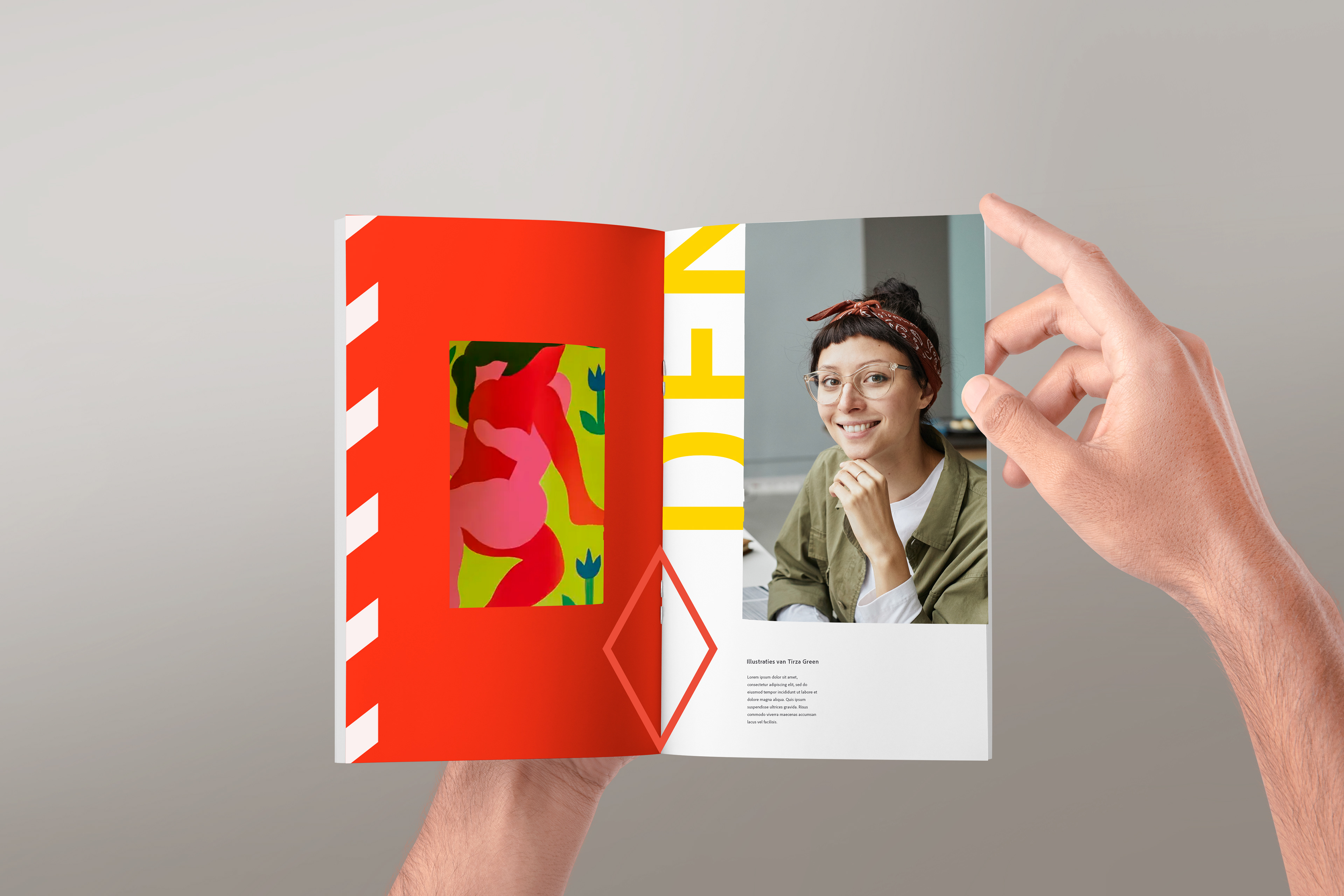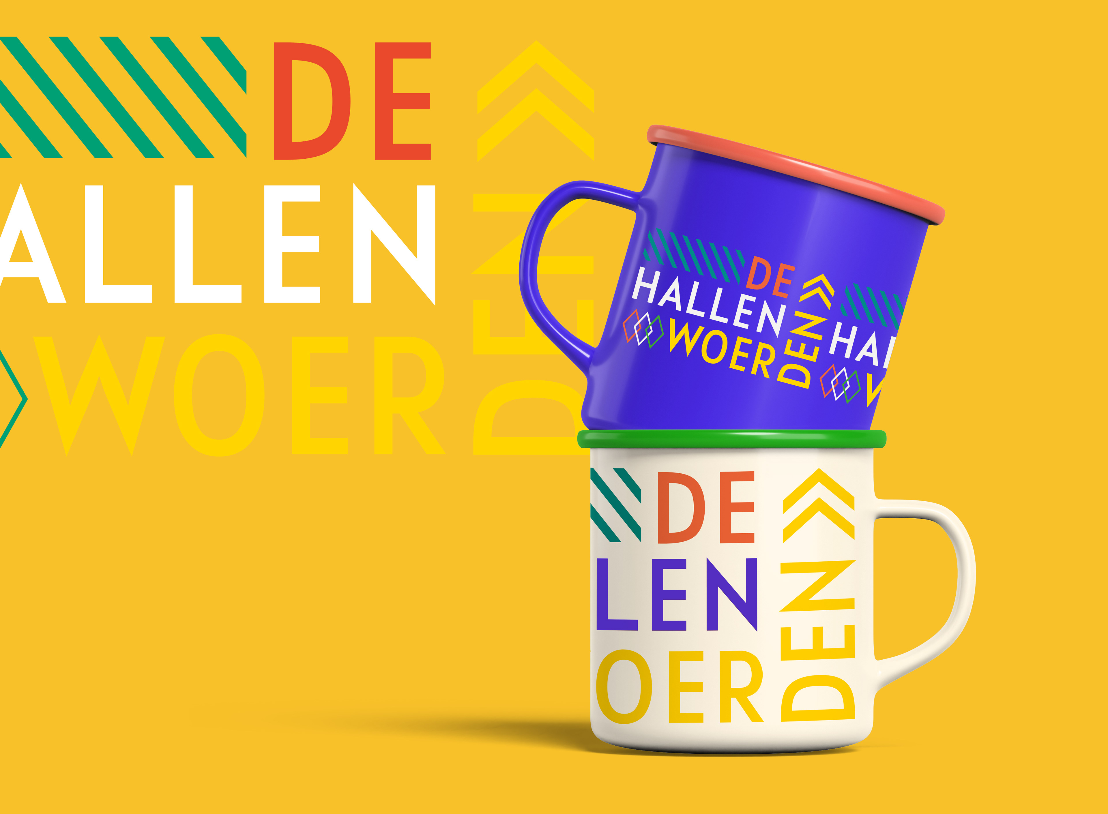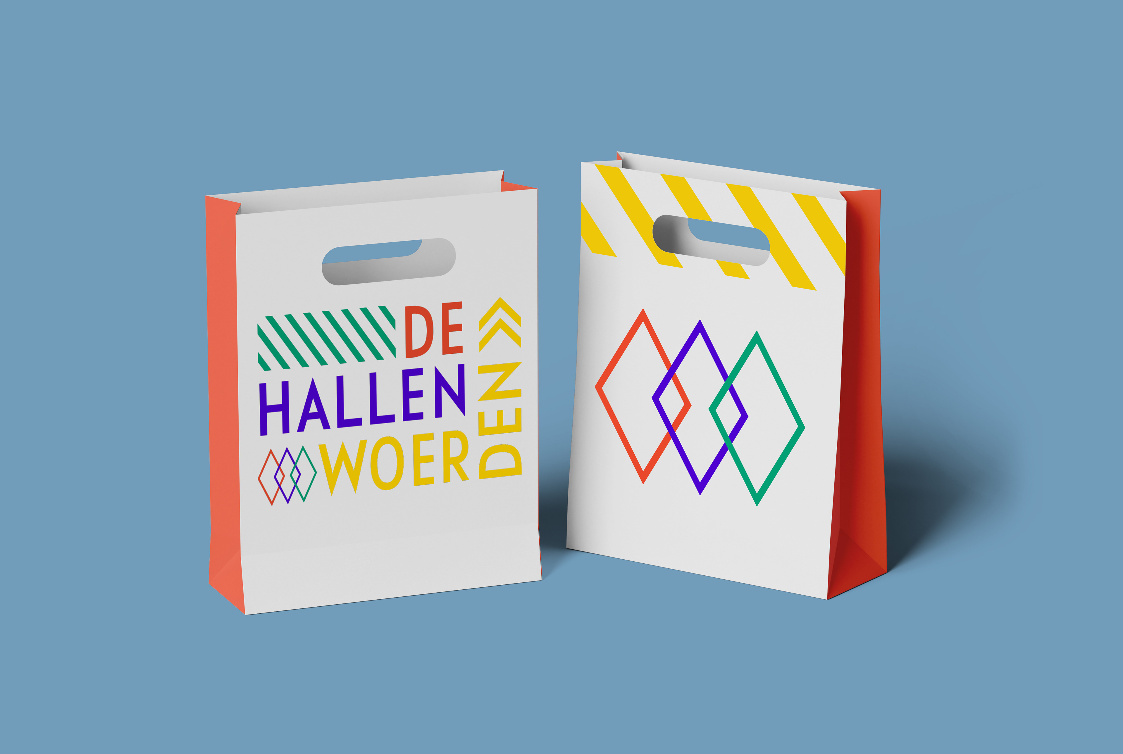 In Woerden wordt een oude hal omgetoverd tot creatieve hub. Dit vraagt om een creatieve uitgesproken en grafische vormgeving. Ik koos voor heldere kleuren met grafische elementen. De drie ruiten verwijzen naar het wapen van Woerden.