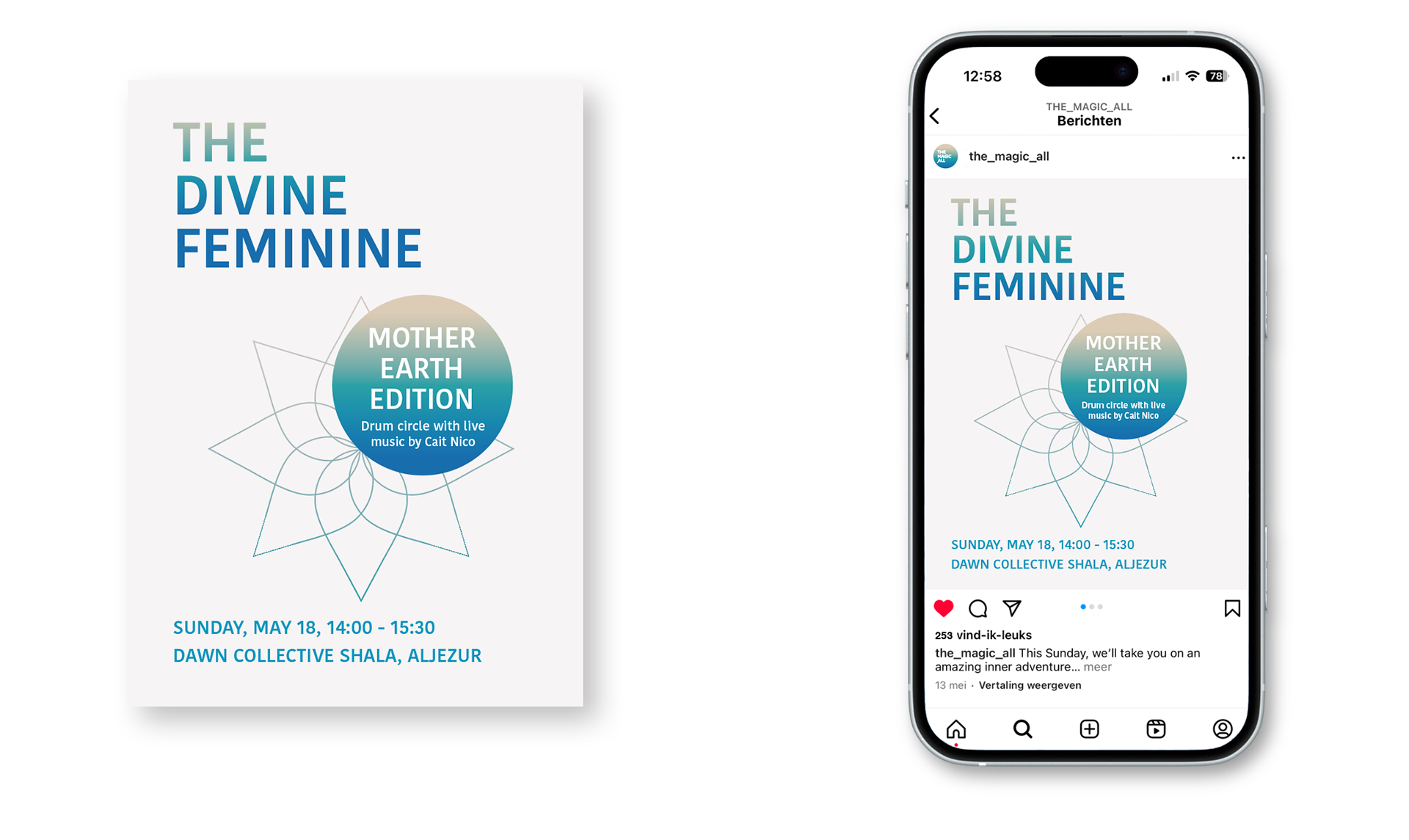 LieZijn een Drum healing, een ontmoeting met je Krachtdier of een Reiki behandeling vaag? Helmaal niet. Heel verfrissend. Ik koos voor een strak basis font gecombineerd met de golven van de Portugese zee waar, de thuisbasis van The Magic All.